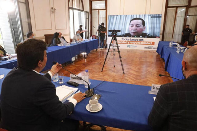 Participaron de la videoconferencia el superintendente de zona oeste y comisario general, Juan Galeano; el director provincial de Seguridad de Policía Comunal y Prevención local Comunal, Ignacio Pacho; el jefe de Gendarmería, comandante Víctor Hugo Gerez; la fiscal, Alejandra Nuñez; el comisario inspector de la DDI, Carlos Pérez; Asistencia a la víctima, Daniel Leaños; el Obispo de Laferrere, Monseñor Jorge Carbonell; el secretario del Obispo de San Justo, Ángel Recine; la secretaria de las Mujeres, Políticas de Género y Diversidades de La Matanza, Liliana Hendel; la secretaria de Cultura y Educación de La Matanza, Silvia Francese; la titular del Consejo Escolar de La Matanza, Sabrina Arias; la jefa de Educación, María Sesana; el secretario de Desarrollo Social de La Matanza, Nicolás Fusca; el secretario de seguridad, Jorge Tapia y el subdirector de Seguridad de la Municipalidad, Carlos Greco y una veintena de representantes de distintos foros vecinales.