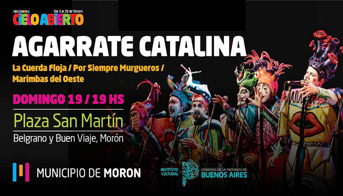 Los viernes, sábados y domingos de febrero el Municipio lleva adelante diversas propuestas musicales, talleres y espectáculos artísticos y culturales gratuitos en la Plaza San Martín (Belgrano y Buen Viaje) y en varios puntos del distrito, en el marco del ciclo Escenario a Cielo Abierto. El plato fuerte de este fin de semana será el domingo 19, desde las 19, con el show de la multipremiada murga uruguaya Agarrate Catalina. Previamente se presentarán, La Cuerda Floja, Por Siempre Murgueros y Marimbas del Oeste.