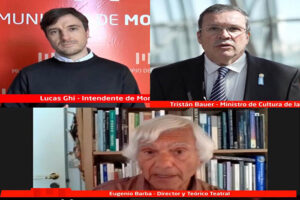 El intendente de Morón Lucas Ghi y el ministro de Cultura de la Nación Tristán Bauer, realizaron la apertura del 1° Congreso Internacional Virtual de Teatro Morón 2020 a través de una transmisión en directo por el canal de Youtube del Teatro Municipal.