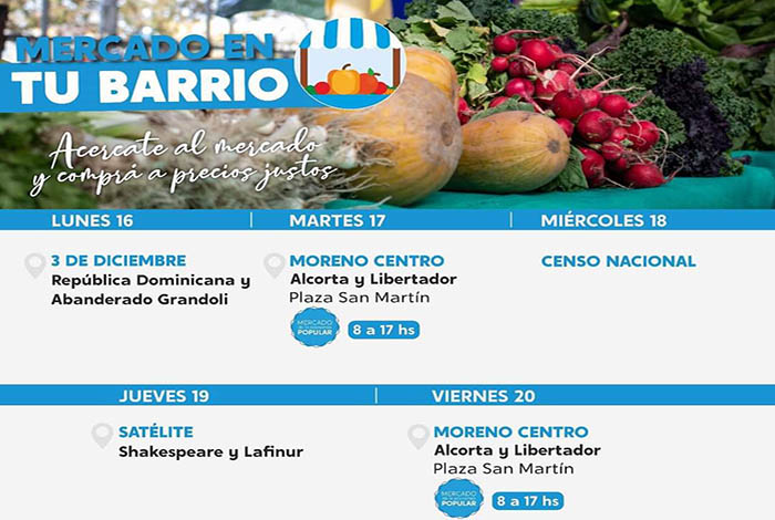 Siga a @IMDEL_Moreno y sepa cuándo y dónde estará el Mercado en Tu Barrio.