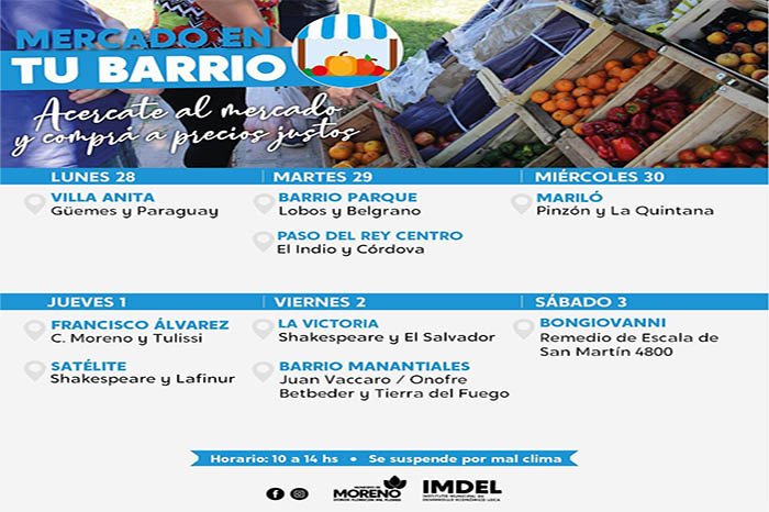 Seguía @IMDEL_Moreno y entérate cuándo estará el Mercado en Tu Barrio.