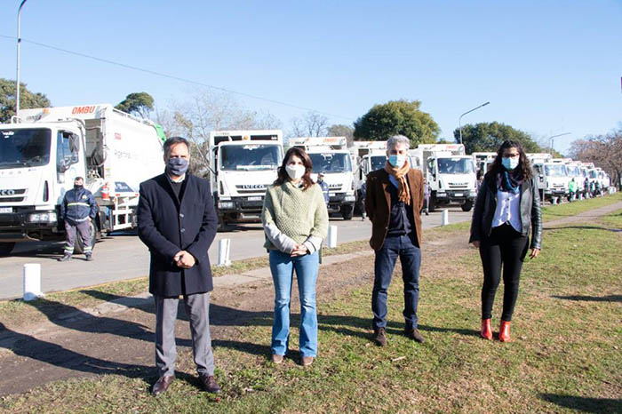 Lo entregado en esta oportunidad fueron 18 camiones compactadores de 17 cm3, de un total de 27 transportes de carga previstos con distintas características y cuya inversión es de $ 378 millones en total.