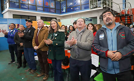 Se realizó un encuentro en el Centro Innovador Tecnológico de La Matanza, en el que participaron directivos y docentes de más de cien escuelas, donde presenciaron en vivo, las nuevas versiones de cuatro canciones patrias, interpretadas por el cantante local y ex combatiente, Fabio Santana junto a su grupo Raíz Soberana.