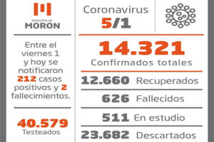El Municipio de Morón dio a conocer que desde la noche del último viernes se notificaron 212 casos positivos de coronavirus entre la población del distrito.