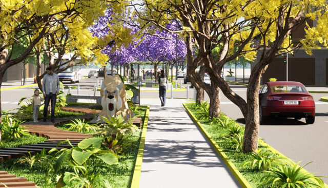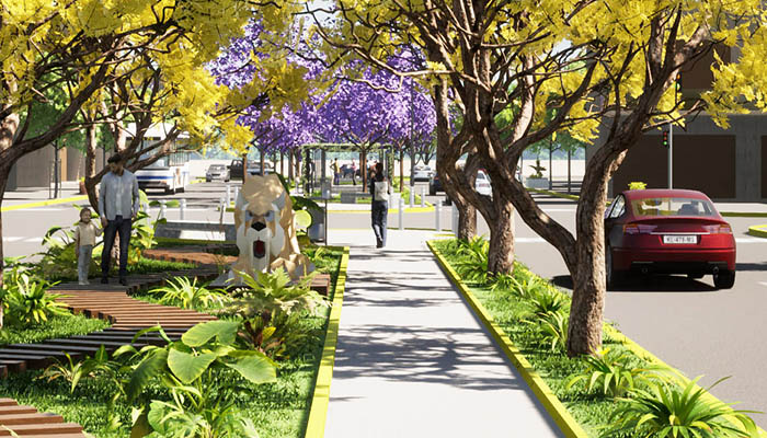 También se colocarán cestos de residuos, bancos, postes de baja altura, rampas, baldosas podotáctiles, instalaciones sanitarias y un sistema de riego.