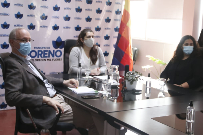 La jefa comunal de Moreno, Mariel Fernández recibió en el Palacio Municipal al ministro de Salud de la Provincia Daniel Gollán junto a la Subsecretaria de salud Bárbara Cortes, donde mantuvieron una reunión de trabajo en la que también participaron funcionarias y funcionarios municipales, integrantes del Comité de Crisis y representantes de los Centros de Salud locales mediante video conferencia.