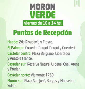 A fines del 2020, el Municipio de Morón volvió a poner en funcionamiento el programa de recolección diferenciada Día Verde que se realiza todos los días miércoles. Esta iniciativa, que se había llevado a cabo antes del 2015, se continuará extendiendo hasta abarcar todo el distrito.