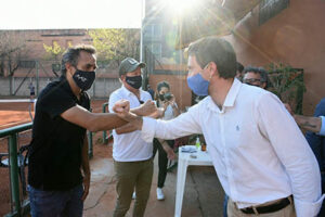 El intendente de Morón, Lucas Ghi, visitó el Club Morón para controlar el funcionamiento del protocolo sanitario. Del encuentro participaron los ex tenistas y actuales dirigentes de la AAT, Mariano Zabaleta y Martín Jaite.