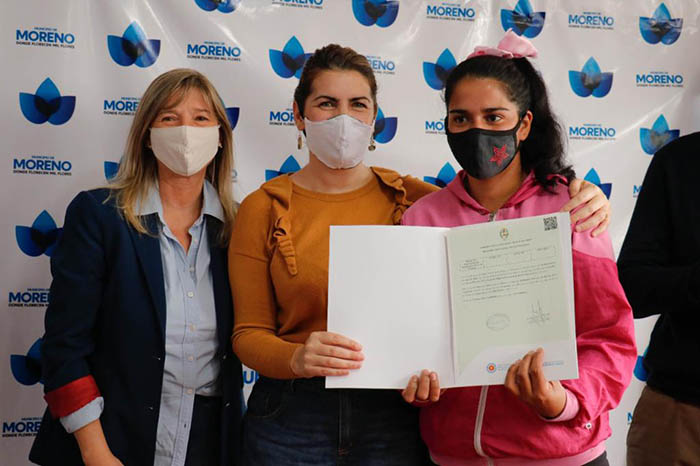 En el municipio de Moreno, la ministra de Gobierno, Cristina Álvarez Rodríguez; la intendenta local, Mariel Fernández; y el director del Registro Provincial de las Personas, Mariano Ríos Ordoñez, hicieron entrega de partidas de nacimiento tramitadas en el marco del programa Mi Identidad Mi Derecho.