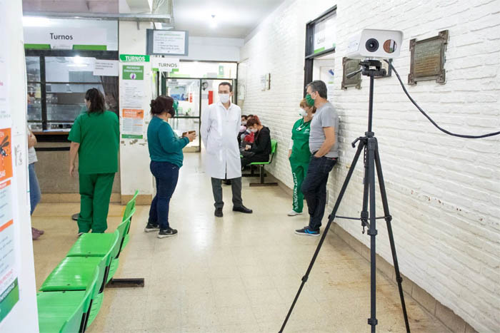 A su vez, el intendente Juan Zabaleta supervisó el funcionamiento de una nueva cámara termográfica que se instaló en el Hospital San Bernardino. Esta tecnología permite medir la temperatura de las personas en el ingreso para detectar si tienen fiebre, uno de los síntomas más característicos del coronavirus. Si la temperatura supera los 37 grados, se activa un protocolo para atender a la persona por guardia y realizar los controles correspondientes.