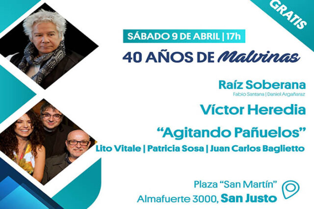El festival musical 40 años de Malvinas, forma parte de una programación de actividades gratuitas que organiza el Municipio para conmemorar, reflexionar y acercarnos al Día de los Veteranos y de los Caídos en la Guerra de Malvinas que se estableció el 2 de abril en memoria y reconocimiento de los compatriotas que dieron su vida por defender la soberanía de las islas ocupadas por Inglaterra.