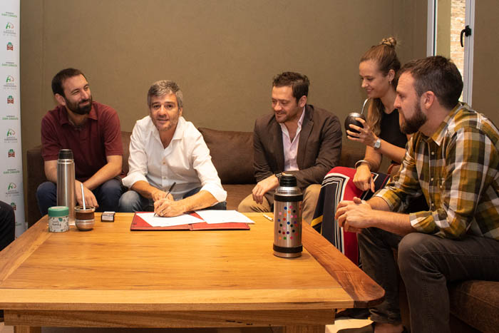 En la firma del convenio participaron el secretario de Innovación Pública y Gobierno Abierto del municipio, Lautaro Aragón; el presidente del Honorable Concejo Deliberante, Damián Selci; y el director Ejecutivo de ADS, Matías Bianchi, quien suscribió el acuerdo con el intendente.