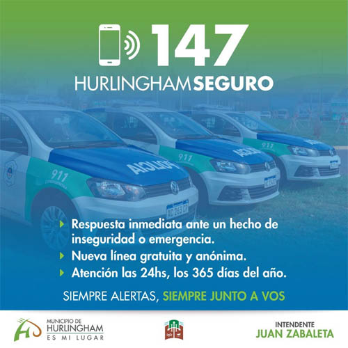 El intendente Juan Zabaleta, presentó el 147, una nueva línea de atención gratuita y anónima de seguridad que funciona las 24 horas, los 365 días del año. Las llamadas telefónicas de los vecinos, que lo harán de forma anónima, denunciando hechos de inseguridad, son recepcionadas en el Centro Integral de Prevención (CIP) del municipio, lo que permite optimizar los tiempos y brindar una respuesta efectiva, articulando todo el sistema de prevención y de seguridad de la comuna.