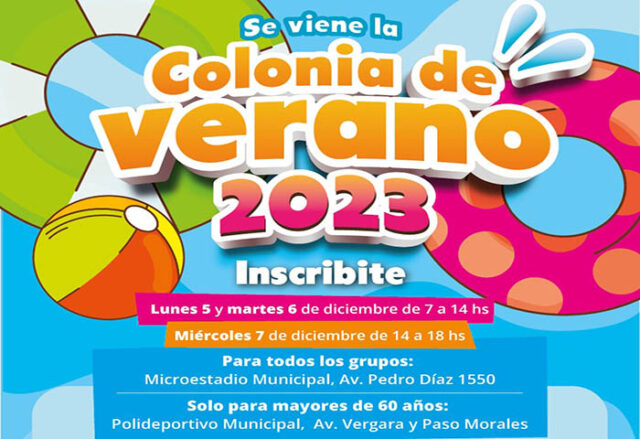 Desde el lunes 5 de diciembre, se habilitarán las inscripciones para la Colonia de Verano 2023 que se desarrollará a partir del 2 de enero en el Polideportivo Municipal.