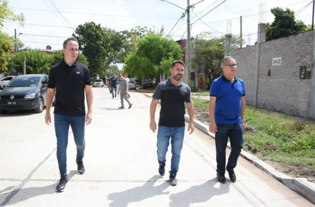 El intendente Alberto Descalzo, junto al Presidente del Concejo Deliberante, Pablo Piana y al Jefe de Gabinete, Pablo Descalzo, llevaron adelante la inauguración del pavimento de la calle Pérez Quintana, desde Balbastro hasta Perdomo, en el Barrio Jardín Pintemar.