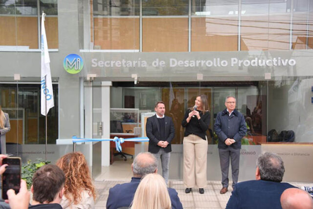El Intendente Alberto Descalzo, junto al Jefe de Gabinete, Pablo Descalzo y la Subsecretaria de Desarrollo Productivo, Natalia Lazzeri, inauguraron el nuevo edificio de la Secretaría de Desarrollo Productivo ubicada en Fragio 183.