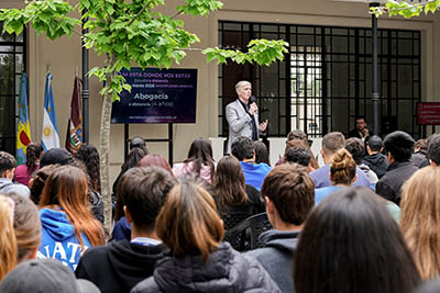 Pablo Navarro, secretario general de la Universidad y experto en educación digital, subrayó la inclusión de la carrera de Abogacía en modalidad virtual, enfatizando que “la experiencia pedagógica mediada por tecnología será complementada con actividades extracurriculares presenciales para una formación más robusta”.