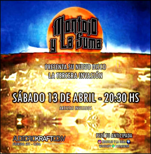 Montojo y La Suma, banda de música latinoamericana (World Music) oriunda del Oeste presenta su nueva obra titulada «La tercera invasión». Disco inédito y conceptual sobre la recuperación desoberanía de «Malvinas e Islas del Atlántico Sur» el próximo 13 de abril.
