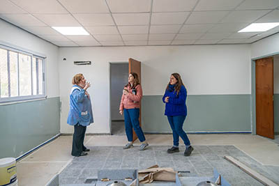 Por su parte, en la obra que se lleva adelante en el Jardín de Infantes N° 940, ubicado en el barrio Parque del Oeste de la localidad de Cuartel V, la intendenta fue recibida por la directora, Roxana Navarro y docentes. La ampliación de este Jardín contempla la creación baños, nueva instalación eléctrica y tres nuevas aulas que permitirán duplicar la matrícula actual.
