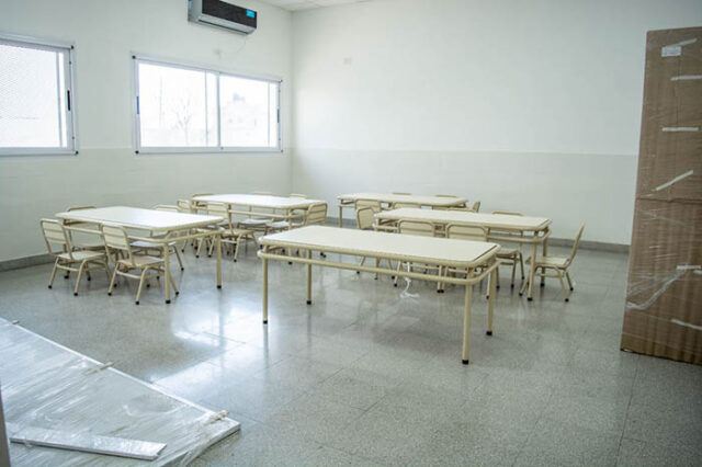 Por otra parte, tanto escuelas primarias, como escuelas secundarias y jardines de infantes, reciben mobiliario para equipar las aulas. Ya se entregaron armarios de cocina, nuevas pizarras de fibra, pizarrones, conjunto de comedor, armarios de salón, escritorio para docentes, mesas, sillas y pupitres unipersonales en las Escuelas Primarias N°7, N°11, N°27, N°30, N°31, N°34, N°45, N°47, N°54, N°61, N°68, N°70, N°39, N°55, N°60 y N°49, también en las Escuelas Secundarias N° 52, N°3, N°13, N°22, N°28, N°34, N°51, N°52, N°55, N°59, N°61, N°68, N°81, N°1 y la N°32 y en los jardines de infantes N°912 y N°945.