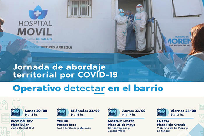 la municipalidad de Moreno realiza todas las semanas estos operativos en diferentes puntos del distrito -en modalidad itinerante- para que todas las vecinas y los vecinos puedan realizarse los testeos correspondientes al Covid-19.