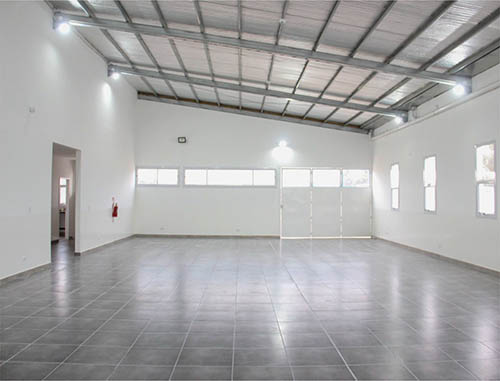 El Salón de Usos Múltiples posee un área principal para distintos usos, cocina y baños accesibles en un total de 160 m2. En lo que respecta al exterior del predio se encuentra cercado con un alambrado olímpico más zócalo de hormigón, y tiene un amplio patio con un playón deportivo para realizar actividades al aire libre.