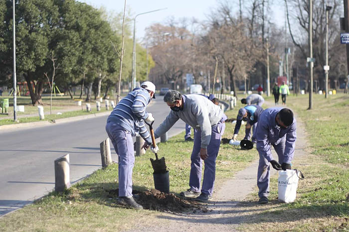 Desde el 10 de diciembre hasta la fecha se han situado 10 mil diferentes árboles y arbustos entre ellos 3.000 en veredas y en espacios públicos como las Plazas Benjamín Franklin en Paso del Rey, Mariano Moreno, San Martín, Las Carretas, Bujan y Corvalán.