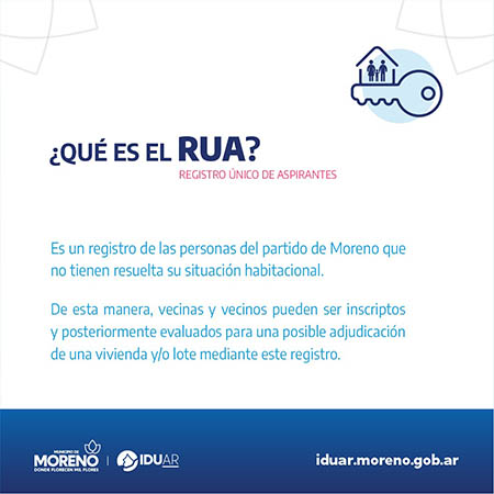 El Municipio de Moreno, a través del Instituto de Desarrollo Urbano, Ambiental y Regional (IDUAR) lanzó el nuevo Sistema de Turnos Digital para inscribirse al Registro Único de Aspirantes (RUA), destinado a personas del distrito que no tengan resuelta su situación habitacional.
