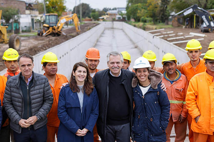 La intendenta de Moreno, Mariel Fernández, recibió al presidente Alberto Fernández y al ministro de Obras Públicas, Gabriel Katopodis y recorrieron la obra de saneamiento de la Cuenca del Arroyo Los Perros, que colaborará en resolver el problema histórico de inundaciones en la zona.