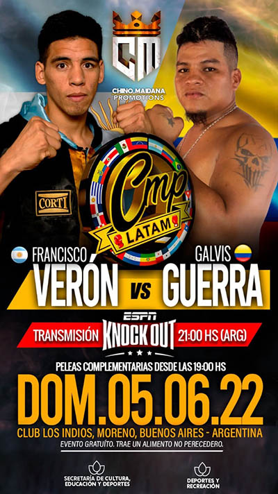 También dirán presente dentro de los combates dos de las grandes promesas del boxeo argentino: Francisco “Bebu” Verón, ex integrante de la selección argentina y participante en los Juegos Olímpicos Tokio 2020, y Brian Agustín Arregui, medalla de oro en los Juegos de la Juventud disputados en Buenos Aires y campeón mundial juvenil de la Organización Mundial de Boxeo.