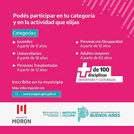 El Municipio local convoca a todos los y las moronenses a formar parte de la 32º edición del torneo más importante de la Provincia, que incluye competencias deportivas y culturales. Las vecinas y los vecinos interesados tienen tiempo de inscribirse hasta fines de abril.