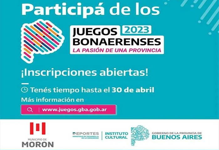 El Gobierno de la Provincia de Buenos Aires lanzó una nueva convocatoria para inscribirse a los Juegos Bonaerenses 2023. Las más de 100 disciplinas, tanto deportivas como culturales, se encuentran dirigidas a jóvenes, adultos y adultas mayores, personas con discapacidad, personas trasplantadas y estudiantes universitarios y terciarios. La comunidad tendrá tiempo de anotarse hasta el 30 de abril a través del sitio web http://juegos.gba.gob.ar.
