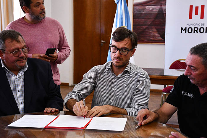 El acuerdo lleva la firma del intendente Lucas Ghi y de los secretarios generales Luis Duré del Sindicato de Trabajadores Municipales de Morón (SETMM), Daniel Torrea del Sindicato de Trabajadores Municipales de Morón, Ituzaingó e Hurlingham (STMMIH), y Julio Escobar de la Asociación de Trabajadores del Estado (ATE).