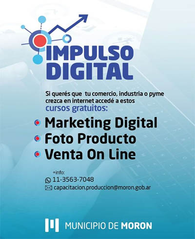 El Municipio de Morón abrió las inscripciones para una nueva edición del programa Impulso Digital, una propuesta de formación gratuita orientada a comerciantes, emprendedores, PYMES e industrias locales. El curso comenzará el miércoles 7 de mayo, con clases presenciales en Castelar.