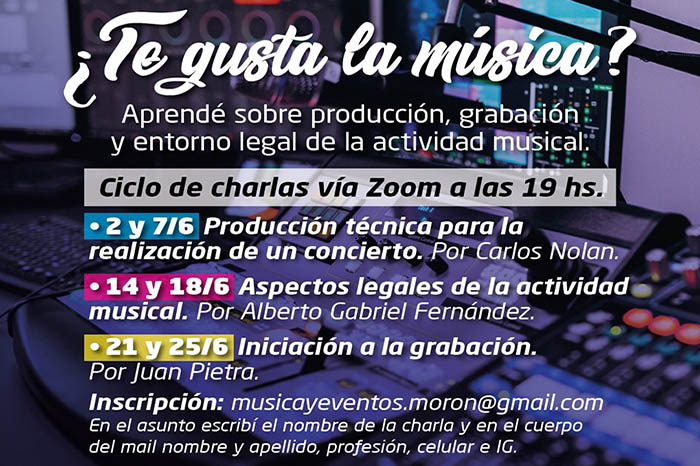Durante junio, el Municipio propone un ciclo de charlas virtuales gratuitas y abiertas a la comunidad para que los vecinos y vecinas del distrito puedan iniciarse en el estudio de la música, su producción, aspectos legales y de su grabación.