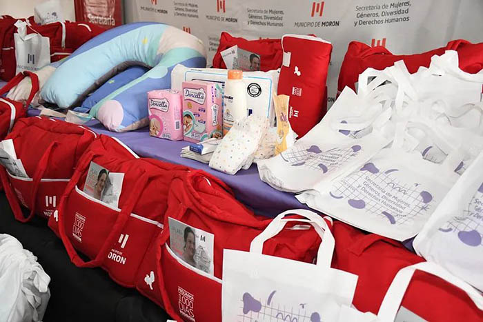 Los bolsos entregados son confeccionados por el Polo Productivo de la Economía Social del Municipio y cuentan con cambiador, toallitas de limpieza, pañales, óleo calcáreo, algodón, apósitos, protecciones mamarias y otros artículos imprescindibles para la higiene de la madre y la o el bebé.