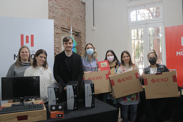 en el encuentro, que tuvo lugar en la renovada Quinta Paracone, el jefe comunal entregó 30 nuevas computadoras e impresoras láser que serán destinadas tanto a los jardines como a los demás establecimientos educativos de diferentes niveles. También se hizo la entrega de libros, materiales didácticos y artículos de librería.