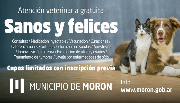 A través de un convenio con el Colegio de Veterinarios de la Provincia, el municipio de Morón ofrecerá un plan de atención sanitaria gratuita para mascotas de la comuna. El servicio se dará en veterinarias adheridas del distrito.