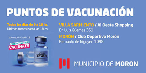 + Vacunatorio Central Morón (Boatti 3, Morón), de lunes a viernes de 8 a 18.