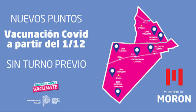 El Municipio de Morón informa que desde el 1 de diciembre, se renovarán los puntos de vacunación en todo el distrito, para poder completar el esquema de dosis contra el Covid y demás vacunas del calendario.