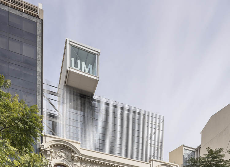 El edificio original, catalogado como Patrimonio Histórico de la Ciudad, contaba con una superficie total de 2554,61m2 y ha sido reformado íntegramente respetando su estructura formal y sus características distintivas, incorporando 1300m2 de ampliación en cuatro pisos de estructura liviana, construida íntegramente en seco con estructura de acero y entrepisos de placas cementicias, apelando a las últimas innovaciones en cuanto a tecnología y materialidad. Esta sede cuenta, finalmente, con ocho niveles, incluyendo subsuelo, planta baja, azotea, salón de usos múltiples, sala de conferencias, oficinas y 19 aulas.