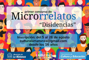 Bajo el título “Disidencias”, el municipio de La Matanza, a través de la Secretaría de Cultura y Educación, abre la inscripción para participar en el Primer Concurso de Microrrelatos teniendo como objetivo principal difundir la literatura y el trabajo narrativo de jóvenes y adultos de todo el distrito, estimulando la producción de obras literarias que tengan como mensaje primordial o eje temático la integración.