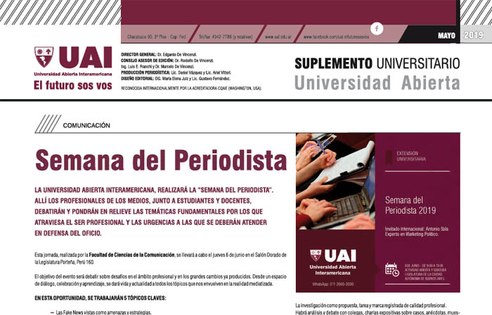 Ya salió la edición online del Suplemento de la Universidad Abierta Interamericana (UAI) de Mayo. Bajalo o leelo online. ¡No te lo pierdas!