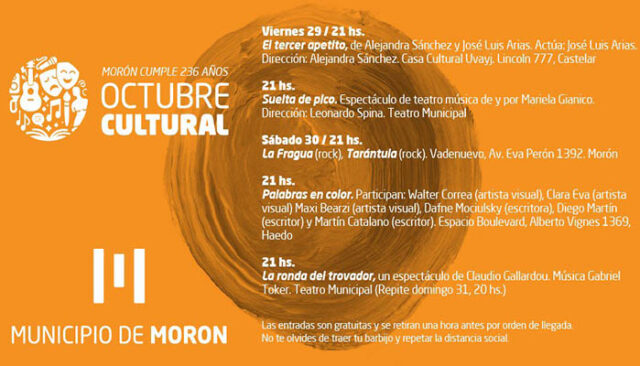 Morón se despide de Octubre Cultural con obras de teatro, exhibiciones de arte, shows en vivo, danza y performances.