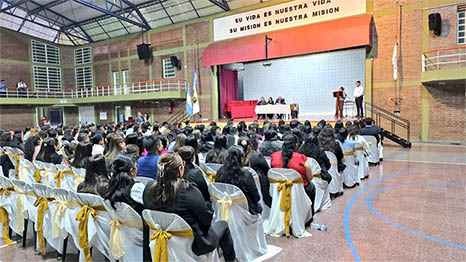 La ceremonia fue encabezada por el Decano de la Escuela Superior de Ciencias de la Salud, Dr. Juan Carlos Ortega, y contó con la presencia de diversas autoridades, entre ellas, la Lic. Irene Baschiera, directora de la Licenciatura en Enfermería, y la Lic. Soledad Mocoroa, Jefa del Departamento Provincial de Enfermería Pre-Hospitalaria del Ministerio de Salud de Jujuy.