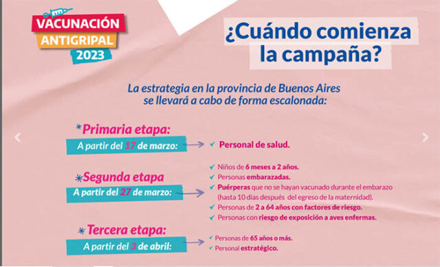 La Provincia de Buenos Aires continúa con la campaña antigripal 2023 para que toda persona que la requiera pueda vacunarse en las unidades vacunatorias de cada distrito de manera gratuita.