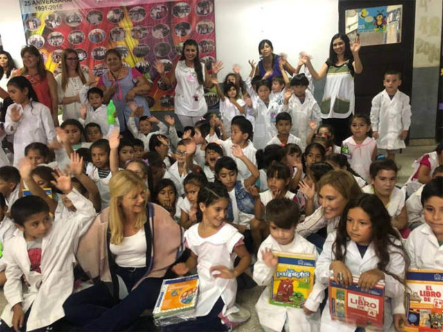 La intendenta Verónica Magario y la Secretaria de Ciencia, Tecnología y Políticas Educativas, Silvina Gvirtz; acompañaron la entrega de libros escolares y útiles destinada a los estudiantes de la EP N°184 y la ES N°133 del barrio El Vivero de Villa Scasso.