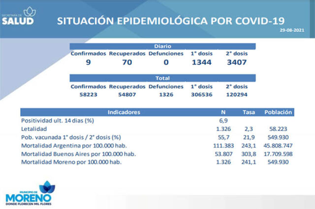 El municipio de Moreno ya se aplicó 426.830 vacunas contra el COVID-19, de las cuales 306.536 corresponden a la primera dosis y 120.294 a la segunda.