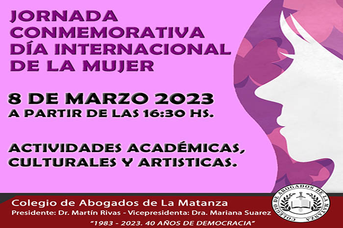 El Colegio de Abogados de La Matanza (CALM), realizará una jornada de actividades académicas, culturales y artísticas en la sede de la institución, con motivo del Día Internacional de la