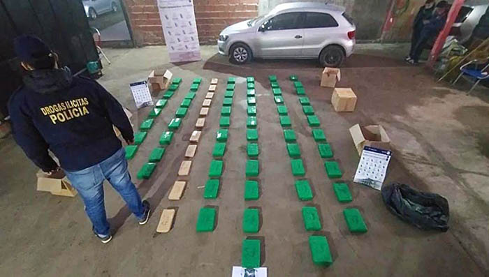 Las tareas de investigación culminaron con el registro de un VW Gol Trend, en la localidad de General Rodríguez, donde se incautaron 115 kilogramos de marihuana y 74 envoltorios tipo panes.